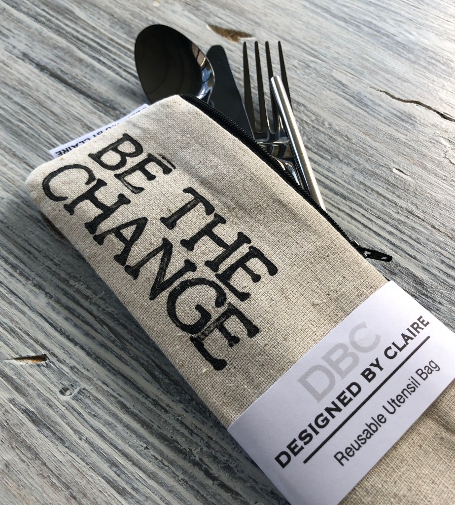 Designed by Claire reusable utensil bags are a great way to say no to single-use plastic. Throw them in your car, purse or lunch bag to have them ready for when you need a meal on the run!